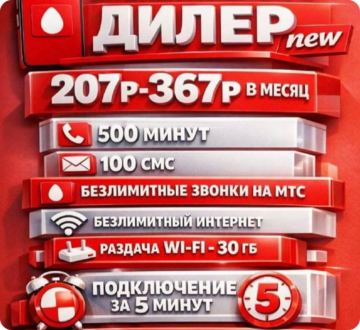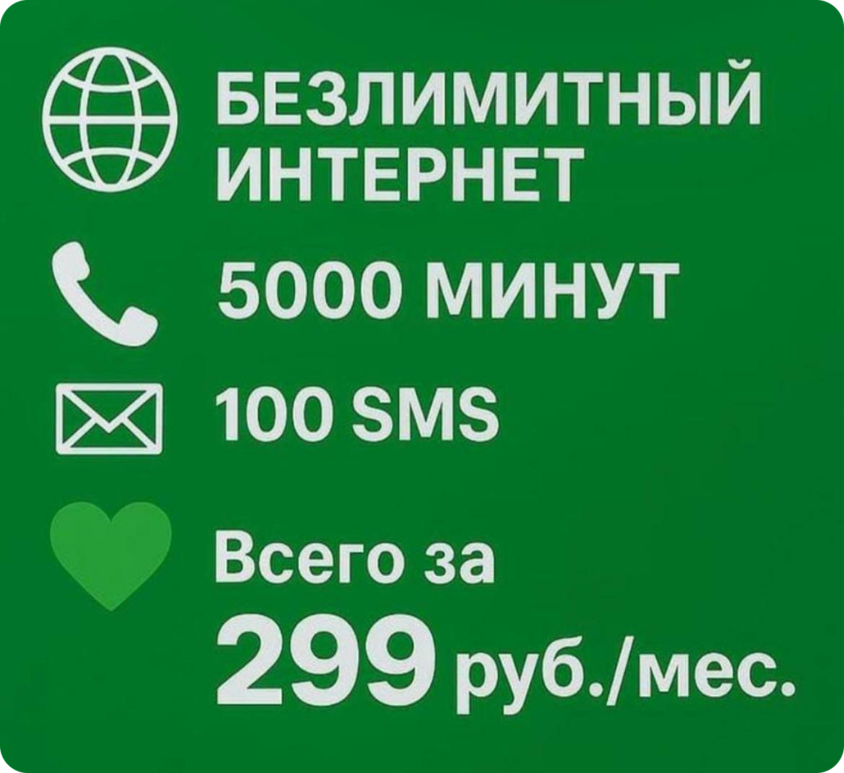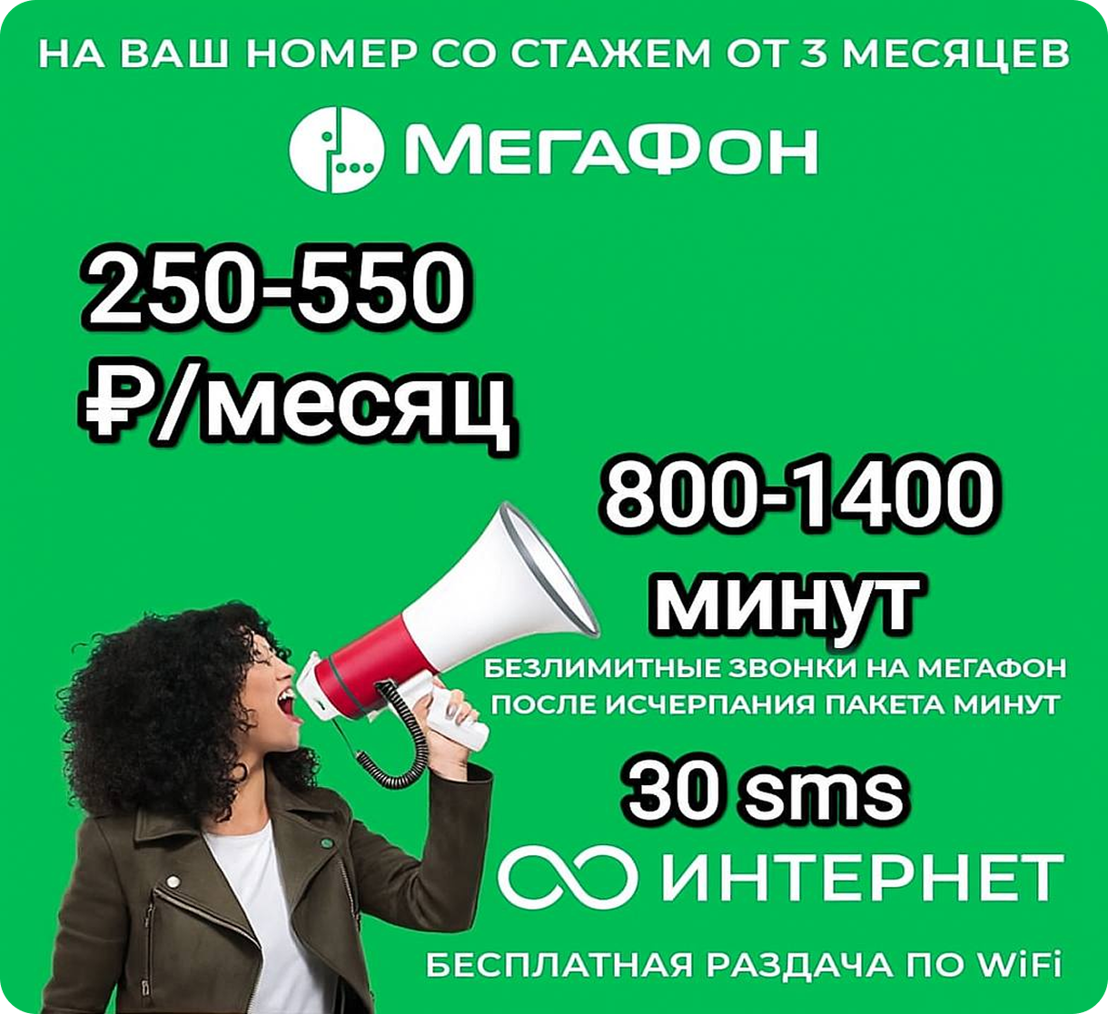 В наличии тарифы с минутами и лимитным пакетом интернета. Оставляйте заявку на сайте, расскажем вам обо всех особенностях, подберём наиболее оптимальный вариант. Предложения закрытые, намного выгоднее публичных. Действуют по всей РФ! Вам будут доступны: личный кабинет, приложение оператора.