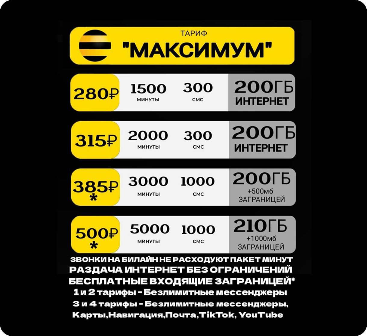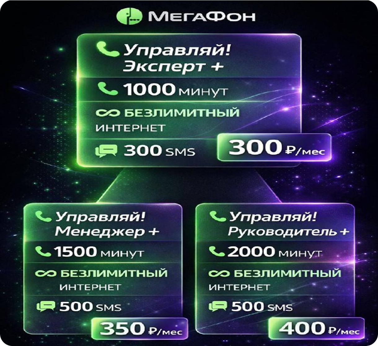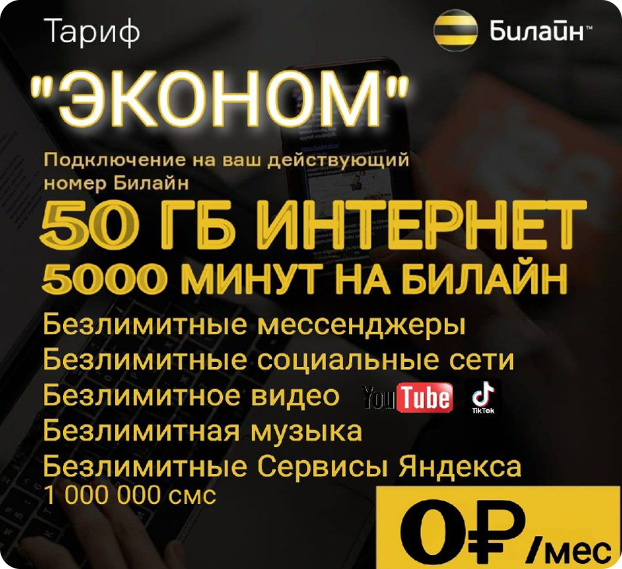 В наличии тарифы с минутами и лимитным пакетом интернета. Оставляйте заявку на сайте, расскажем вам обо всех особенностях, подберём наиболее оптимальный вариант. Предложения закрытые, намного выгоднее публичных. Действуют по всей РФ! Вам будут доступны: личный кабинет, приложение оператора.